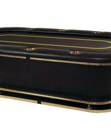 Если вам нужен премиальный покерный стол на 9 или 10 игроков, без подсветки, с отделкой из натуральной кожи и акцентом на роскошный внешний вид, мы изготовим его по индивидуальному проекту. Такой стол подойдёт для клиентов, которым важно не просто игровое оборудование, а полноценный интерьерный объект высокого класса.