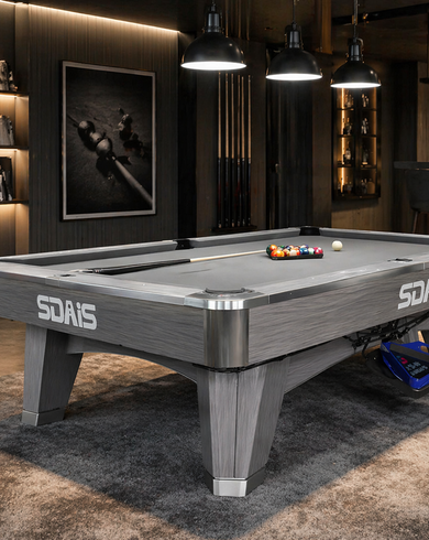 Этот бильярдный стол в современном сером исполнении сочетает в себе строгий дизайн, визуальную легкость и практичность для регулярной игры. Модель отлично подходит для частных интерьеров, бильярдных комнат, клубов, лаунж-зон, гостиниц и коммерческих пространств, где важно не только качество игрового оборудования, но и его внешний вид.